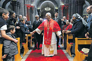 Christus ist der lebendige Mittelpunkt, er ist das Herz unseres Glaubens, und von dieser Mitte her möchte ich mich an euch wenden und Seine Hoheit Fürst Albert, Seine Exzellenz Erzbischof Dominique-Marie David sowie die anwesenden Priester und Ordensleute herzlich begrüßen und euch allen meine Freude darüber zum Ausdruck bringen, dass ich hier sein und an eurem Weg, den ihr als Kirche geht, teilhaben darf.