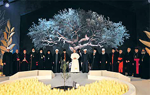 ich bin tief bewegt und sehr dankbar, mich heute unter euch zu befinden, in diesem gesegneten Land – einem Land, das von den Propheten des Alten Testaments gepriesen wurde, die in seinen hoch aufragenden Zedern Symbole der gerechten Seele sahen, die unter dem wachsamen Blick des Himmels gedeiht; einem Land, in dem das Echo des Logos nie verstummt ist, sondern von Jahrhundert zu Jahrhundert weiterhin in den Herzen all derer widerhallt, die Gott ehrlich suchen.
